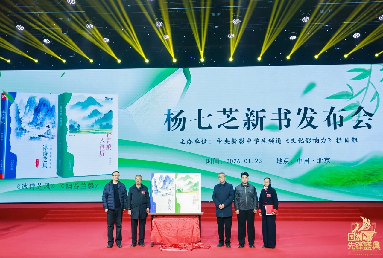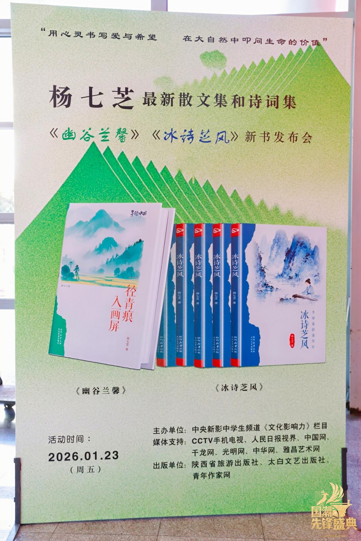 2026年1月23日,由中央新影中学生频道《文化影响力》栏目主办,知名作家、画家杨七芝女士的两部新作《冰诗芝风》诗词集与《幽谷兰馨》散文集发布会,在北京中国农业电影电视中心演播厅隆重举行。来自文学界、艺术界、媒体界的百余位嘉宾齐聚一堂,共同见证这位扎根三清山五十载的文人以笔墨书写时代、以诗文致敬山河的创作成果。